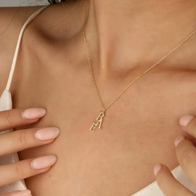 Blok Tip Harf Kolye | 925 Gümüş