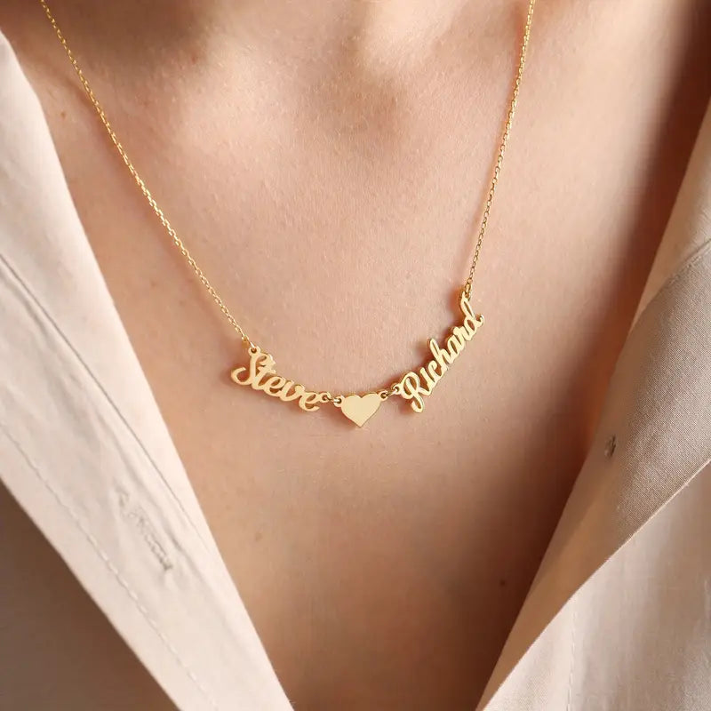 Çift İsimli Kalp Kolye | 925 Gümüş