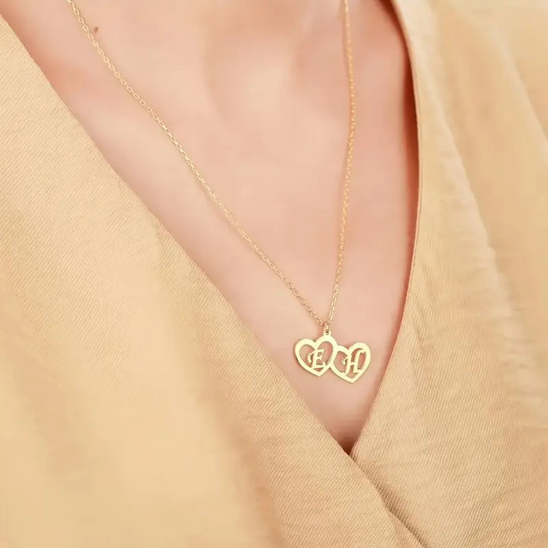Çift Kalp Kolye - Özel Baş Harfler Kazınmış | 925 Gümüş