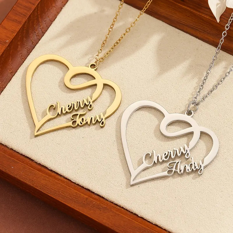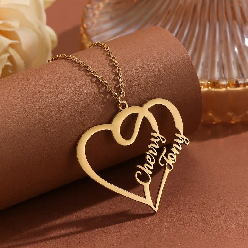 Kalp Kolye, Özel Çift İsimli | 925 Gümüş