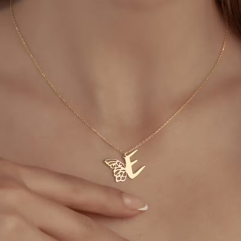 Kelebek Figürlü Harf Kolye | 925 Gümüş