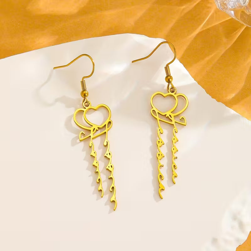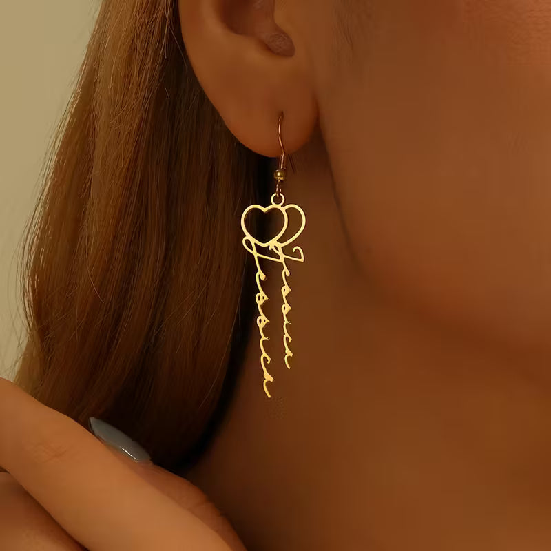 Kişiselleştirilmiş Çift İsimli Çift Kalp Küpe | 925 Gümüş