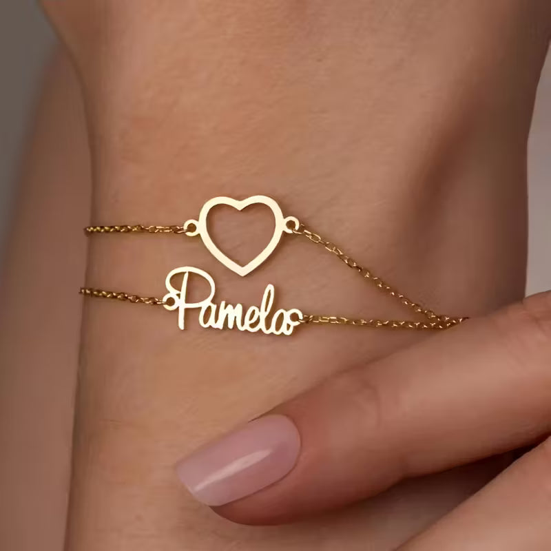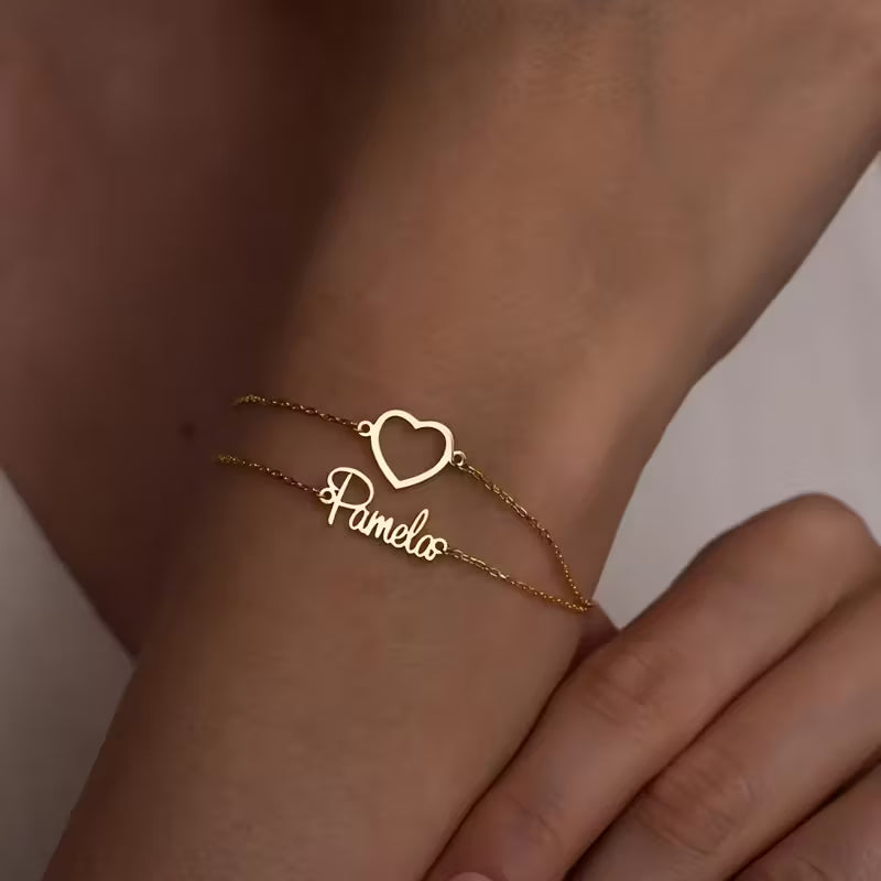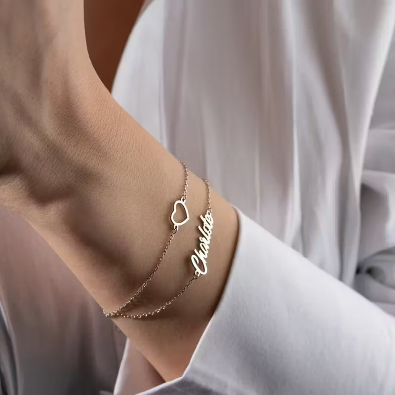 Kişiselleştirilmiş Çift Zincir İsim Bileklik | 925 Gümüş