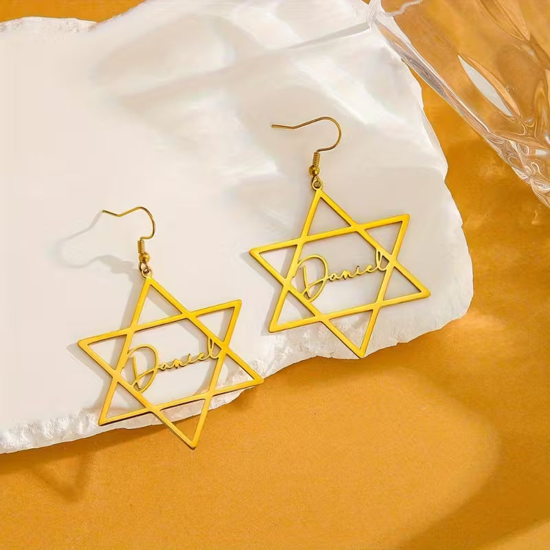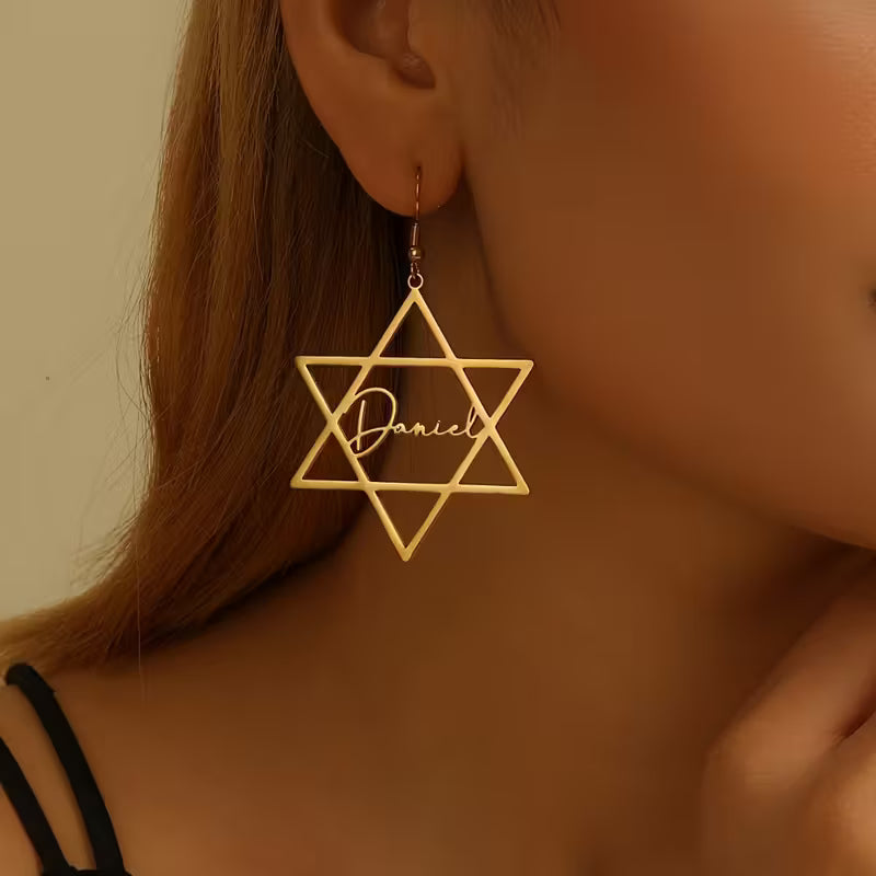 Kişiselleştirilmiş David Yıldızı Kolye Küpe | 925 Gümüş