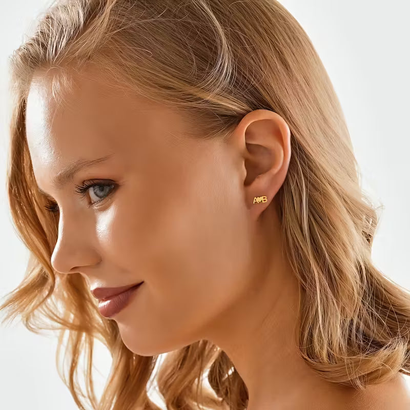Kişiselleştirilmiş İsim Harf Kalp Küpe | 925 Gümüş