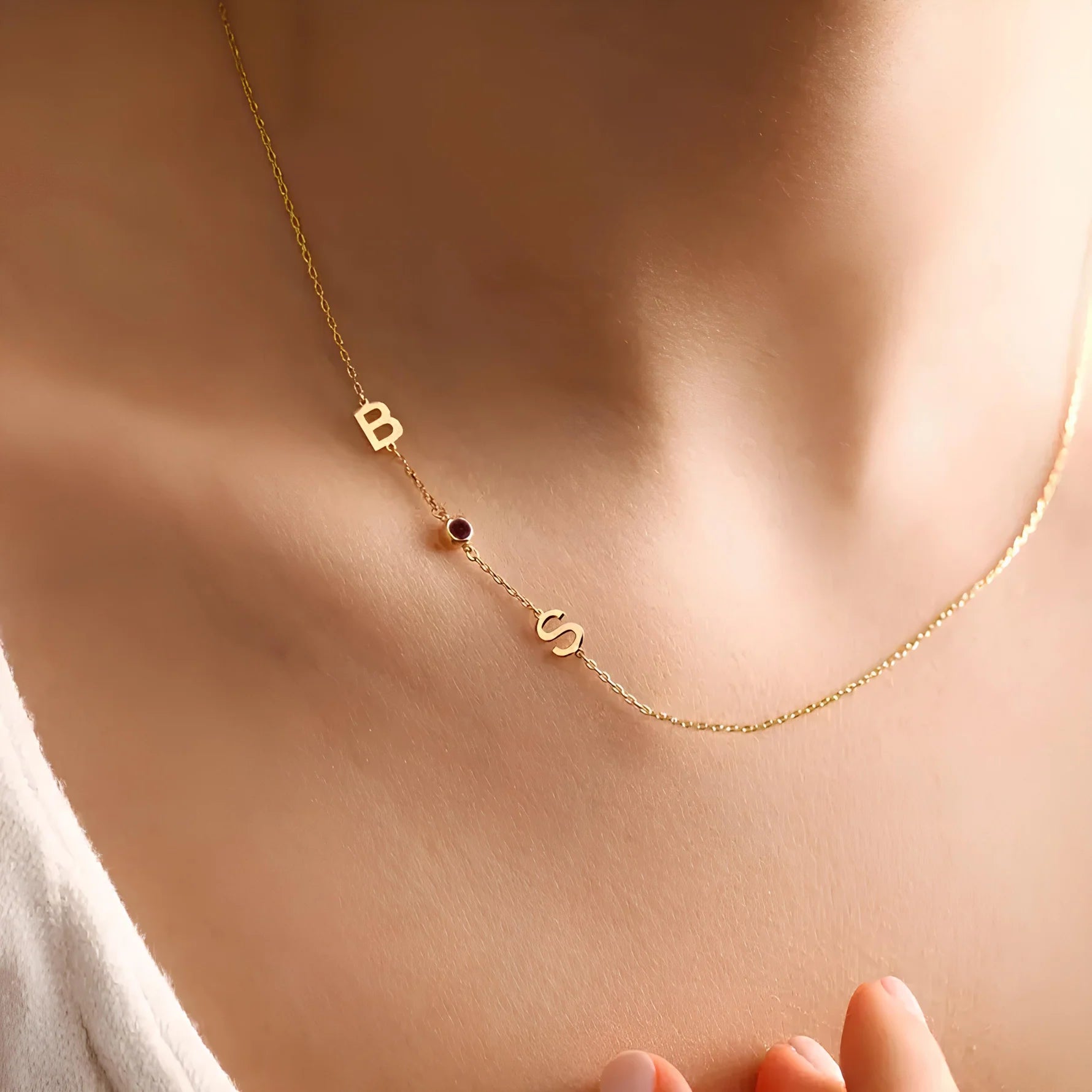 Renkli Taş Aralı Harf Kolye | 925 Gümüş
