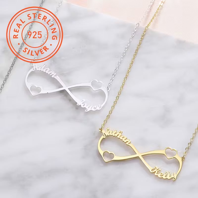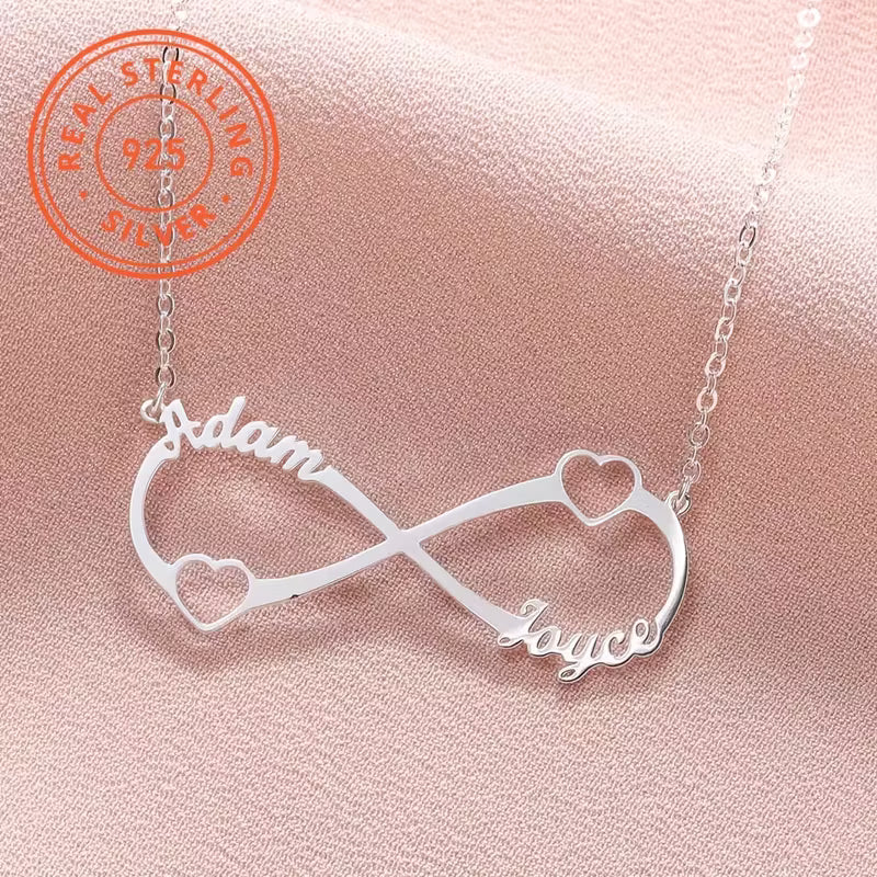 Sonsuz İşaret Çift Kalp ve Çift İsim Kolye | 925 Gümüş